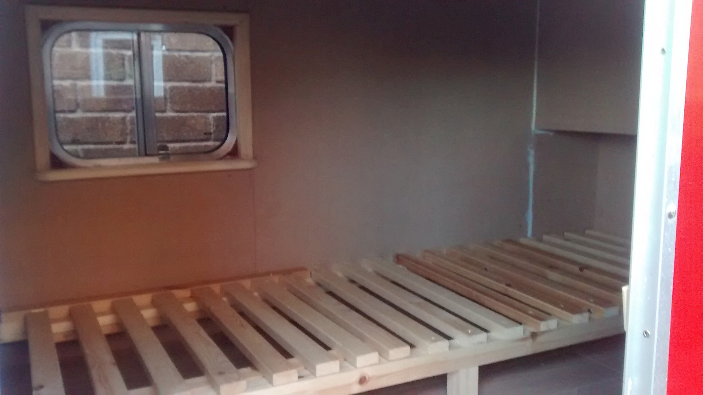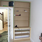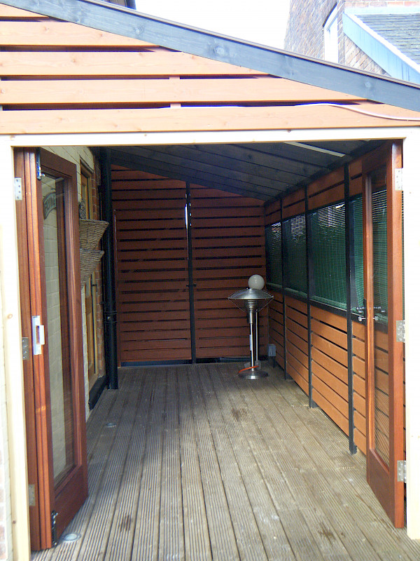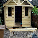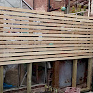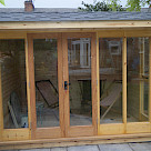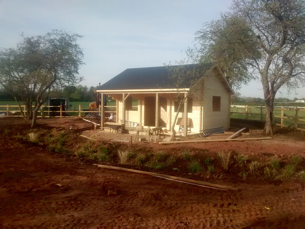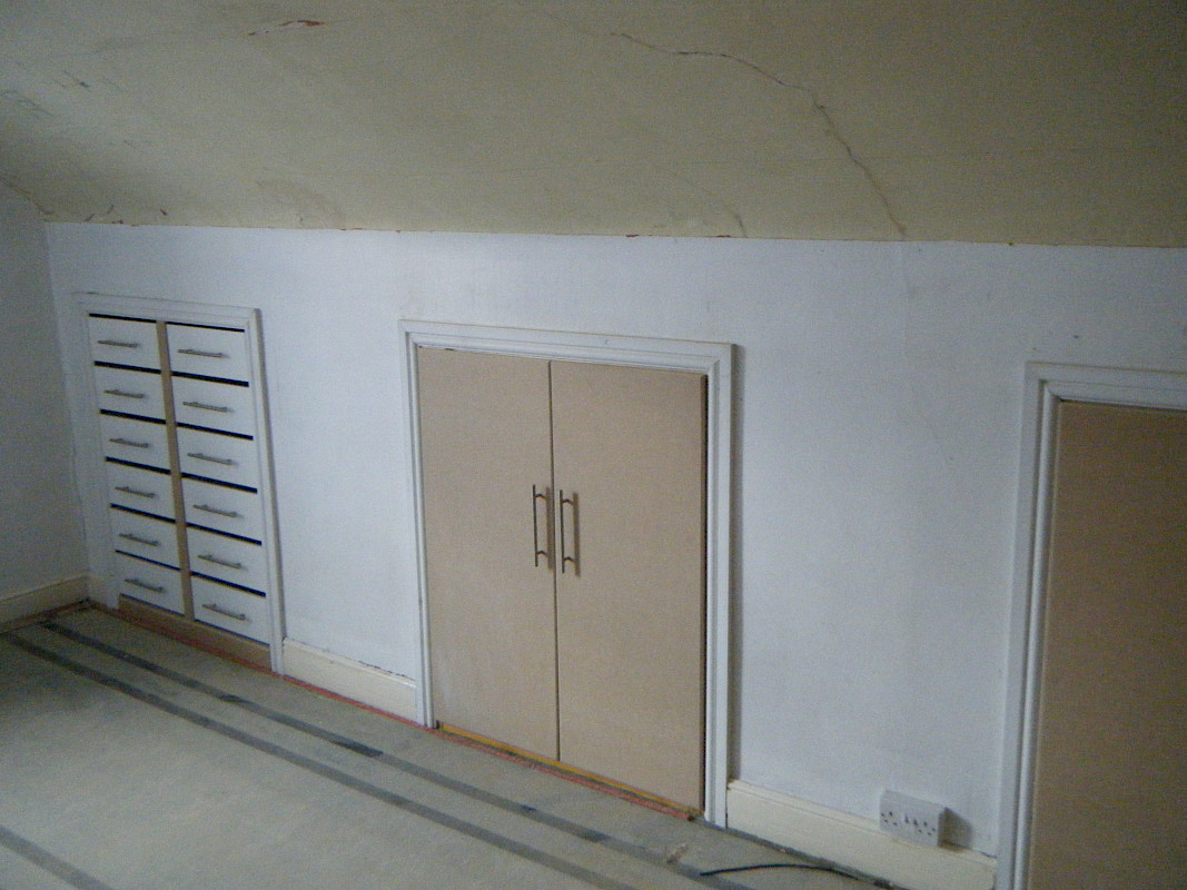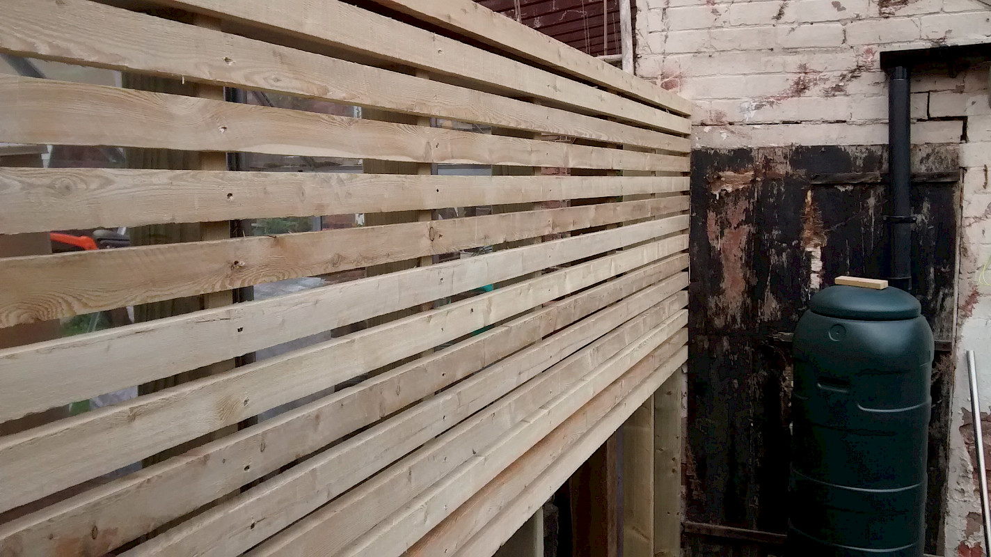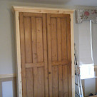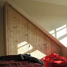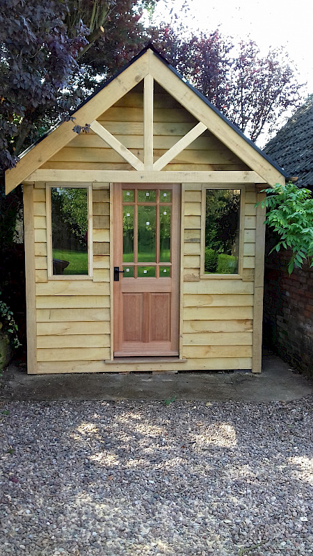 My customer had a workshop but found it very cold in the winter months. I decided to build a stud wall in front of the metal shuttering, I then insulated it with 75mm Kingspan thermal board. On the inside I attached 18mm chipboard sheets to the stud wall. On the outside I faced it with 19mm joinery grade matchboard. A framed, legded and braced door for access was also fitted to the right hand side. Result: a happy warm customer who can tinker on his projects all year.