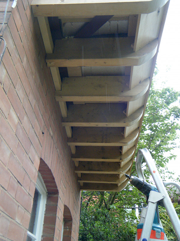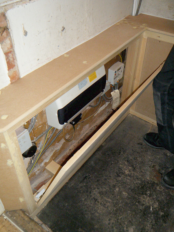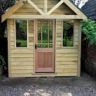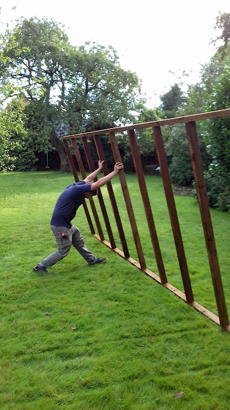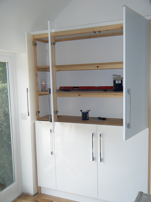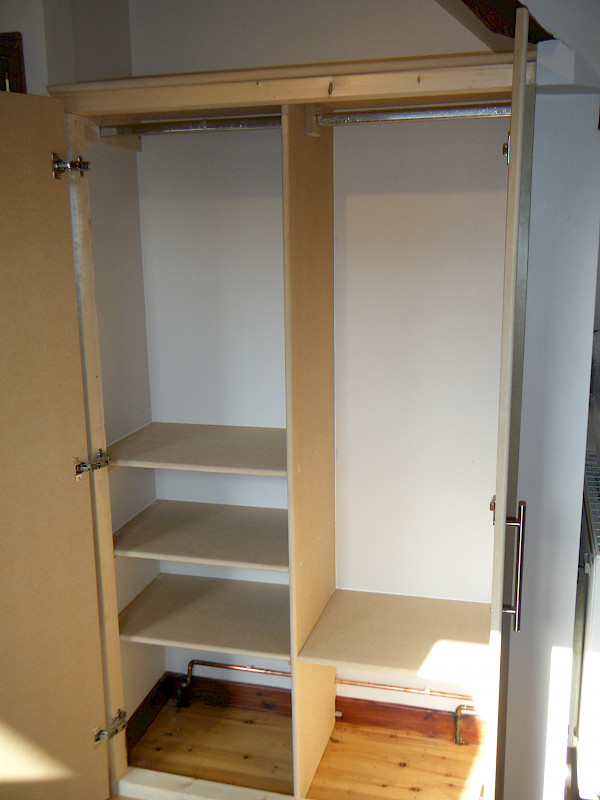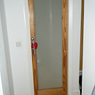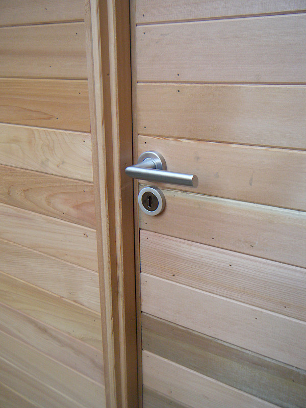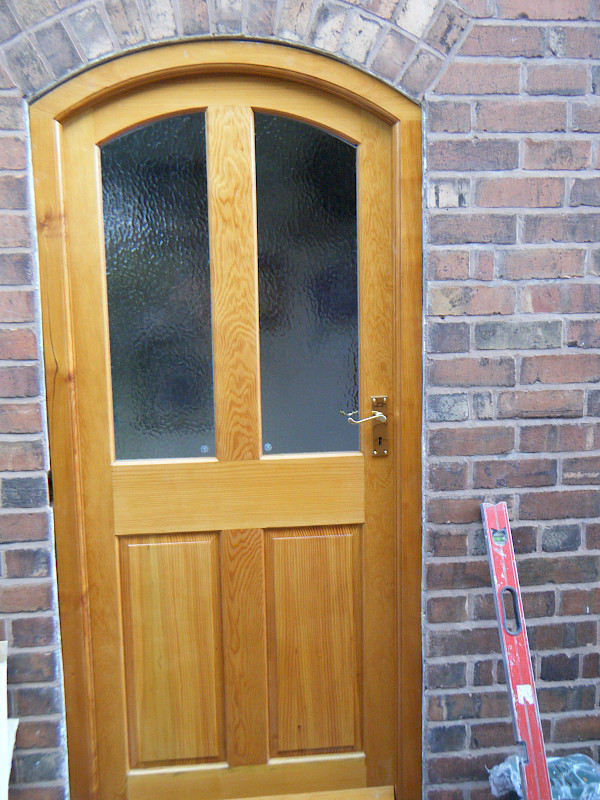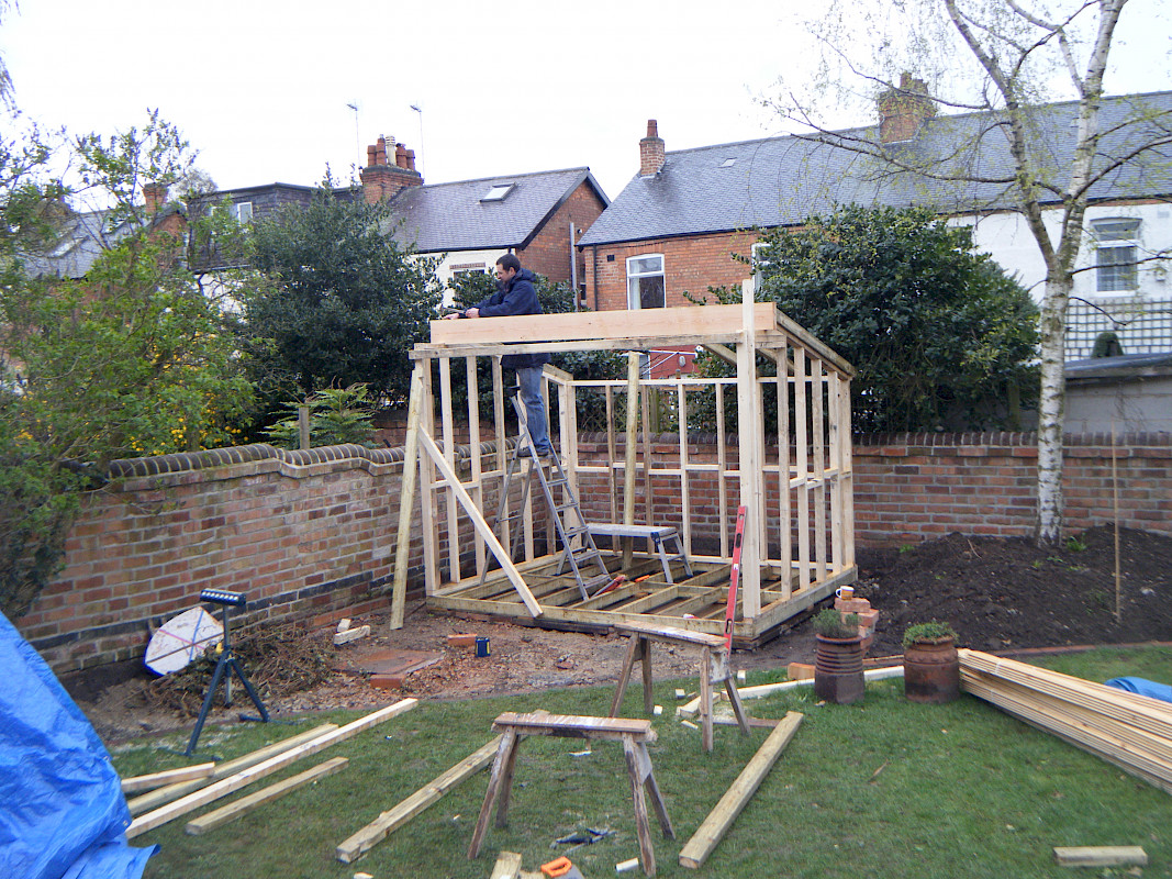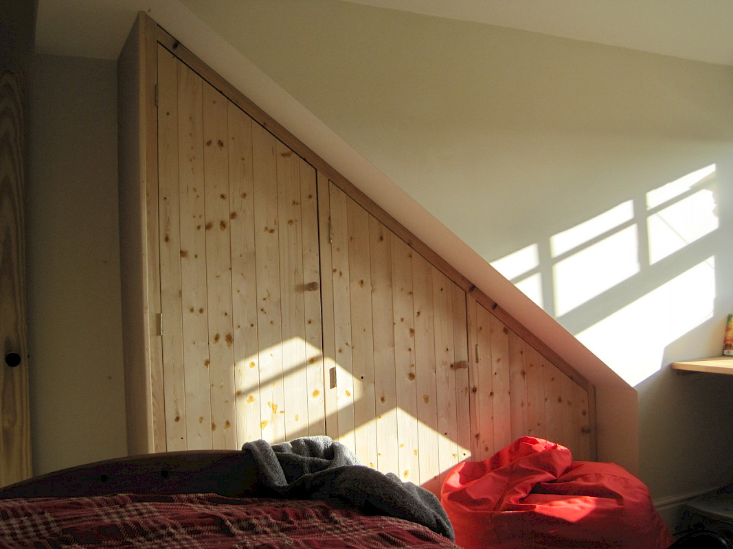 My customer had a workshop but found it very cold in the winter months. I decided to build a stud wall in front of the metal shuttering, I then insulated it with 75mm Kingspan thermal board. On the inside I attached 18mm chipboard sheets to the stud wall. On the outside I faced it with 19mm joinery grade matchboard. A framed, legded and braced door for access was also fitted to the right hand side. Result: a happy warm customer who can tinker on his projects all year.