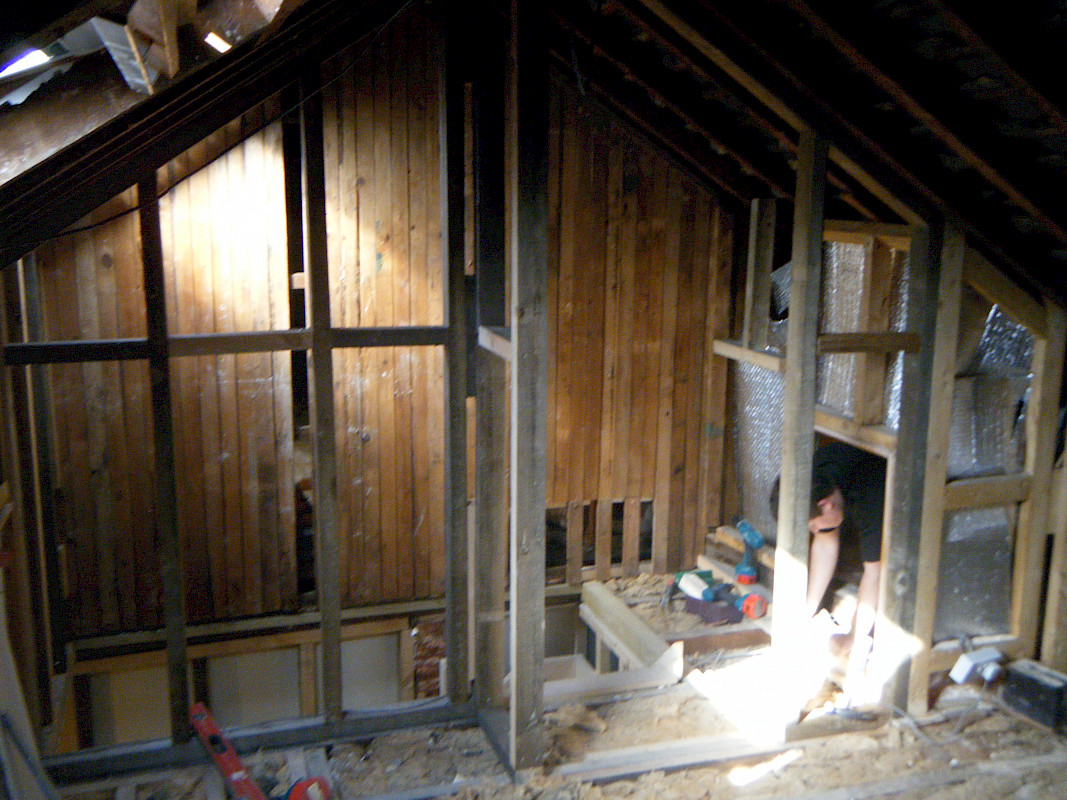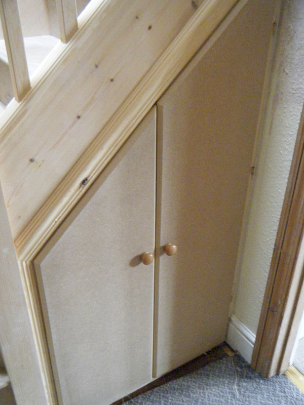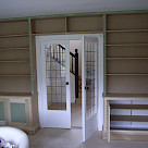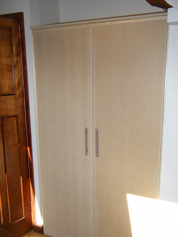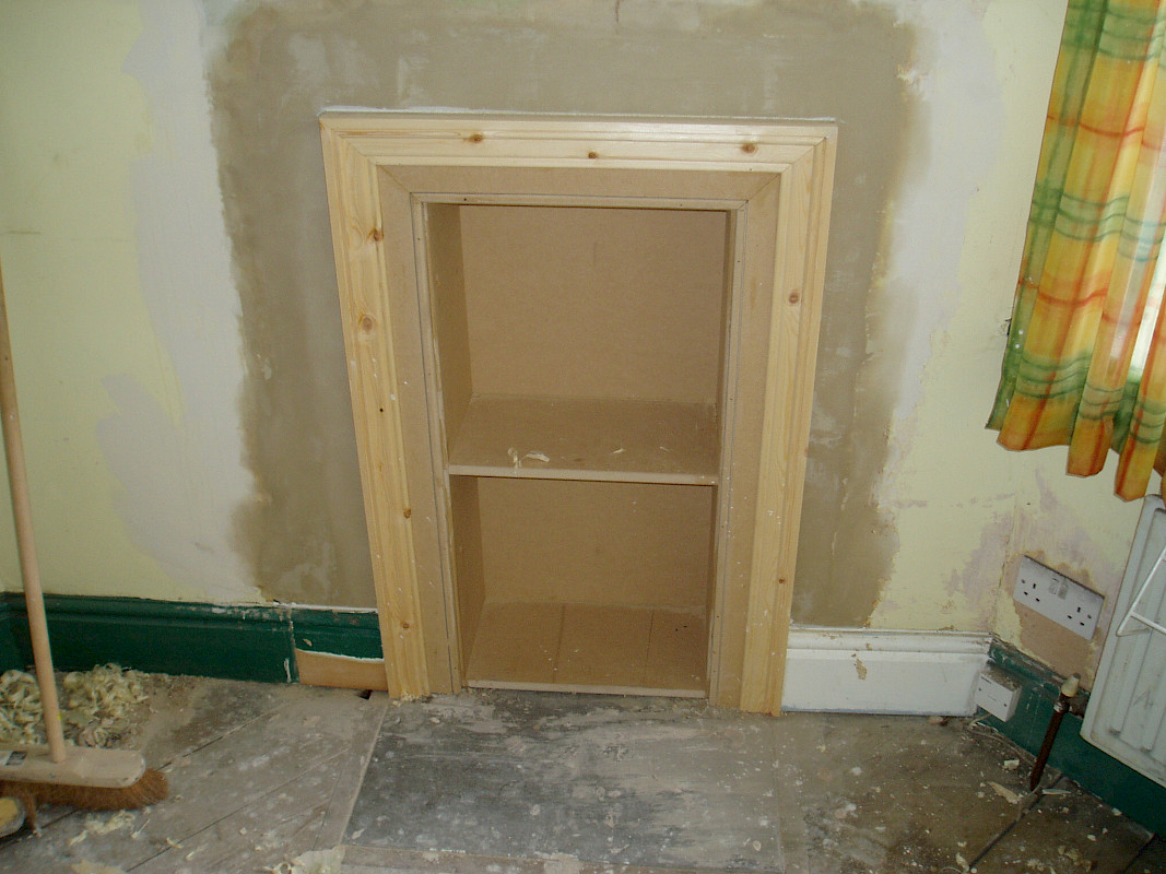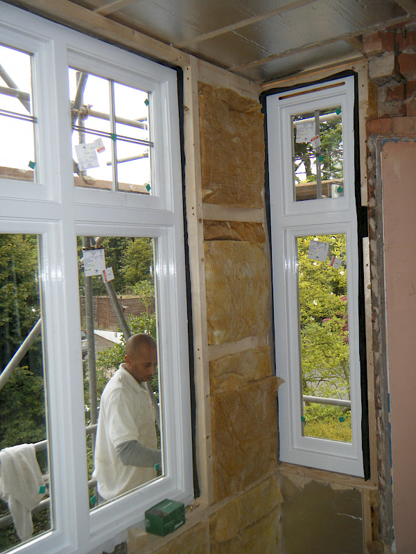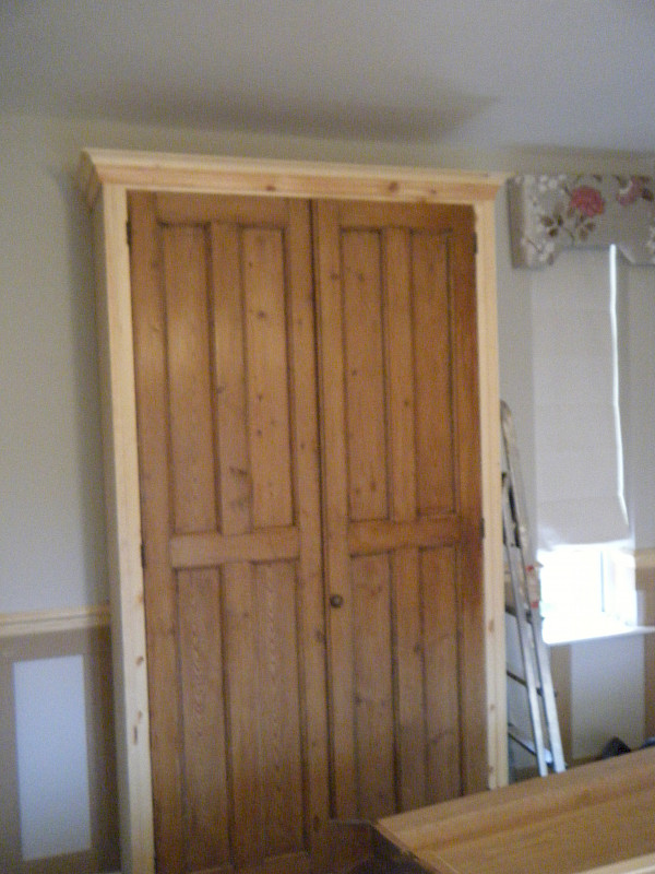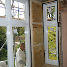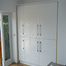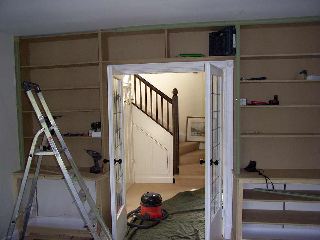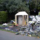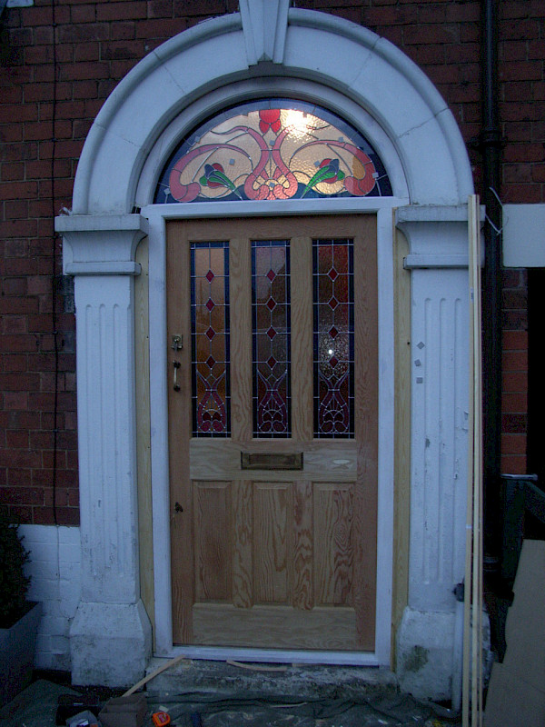 My customer had a workshop but found it very cold in the winter months. I decided to build a stud wall in front of the metal shuttering, I then insulated it with 75mm Kingspan thermal board. On the inside I attached 18mm chipboard sheets to the stud wall. On the outside I faced it with 19mm joinery grade matchboard. A framed, legded and braced door for access was also fitted to the right hand side. Result: a happy warm customer who can tinker on his projects all year.