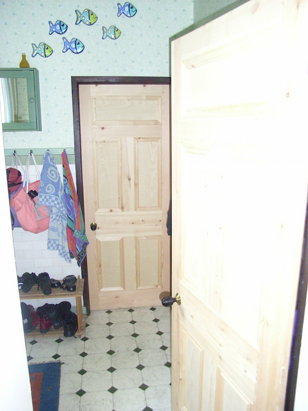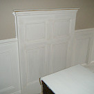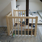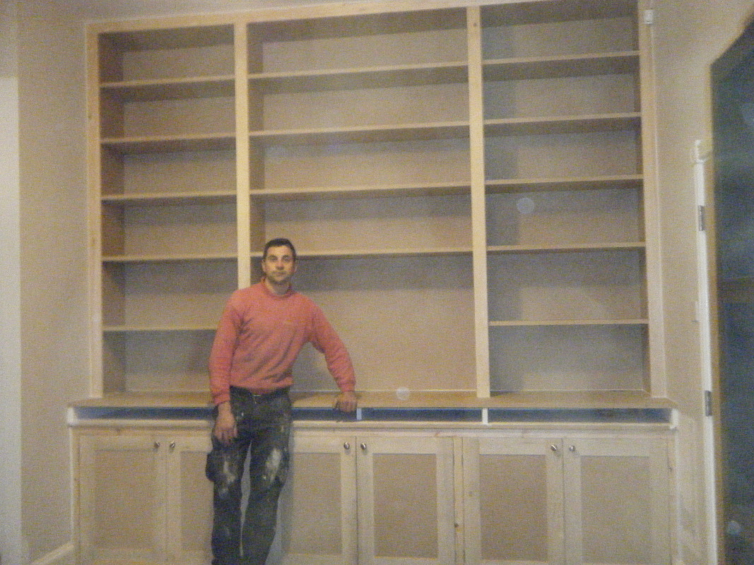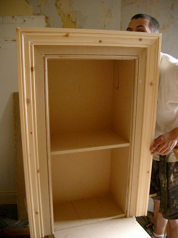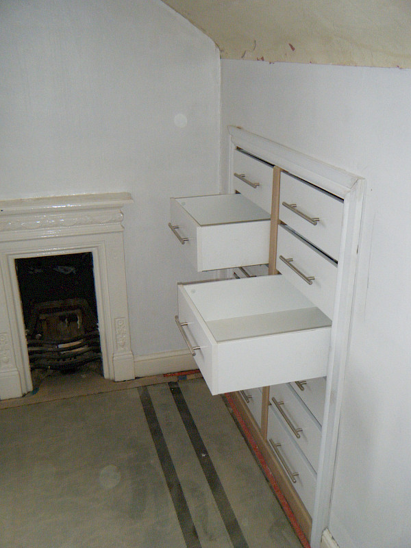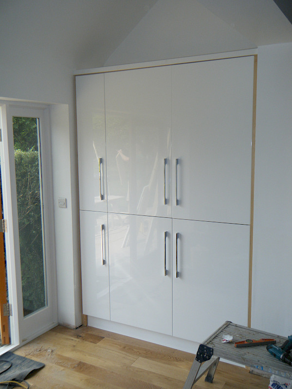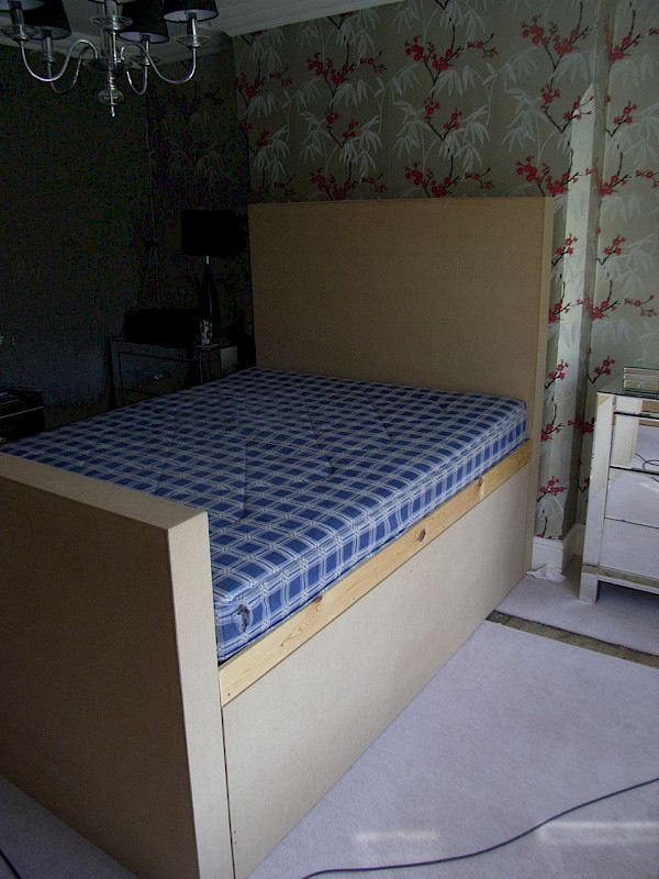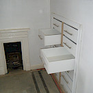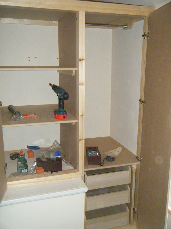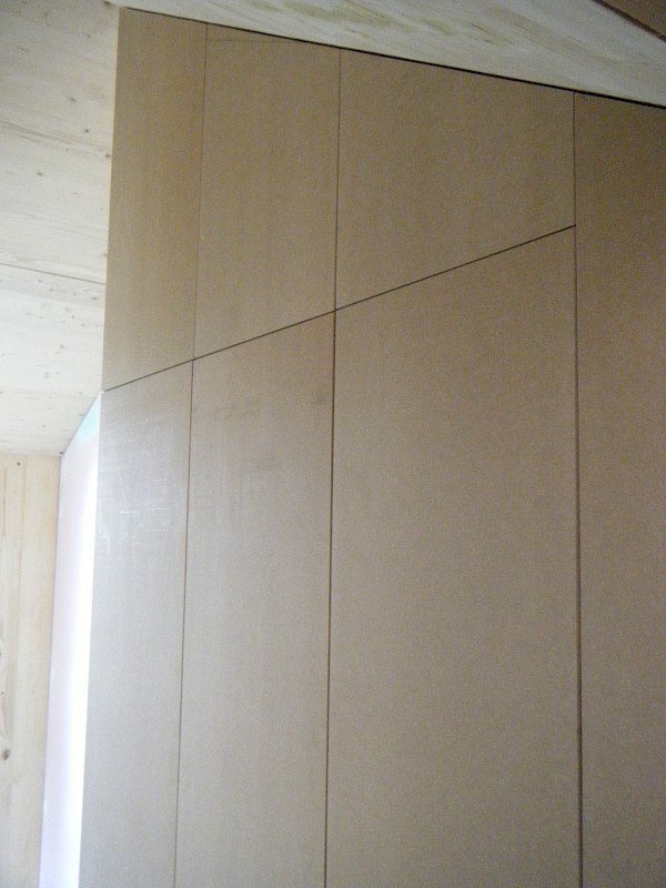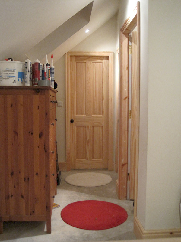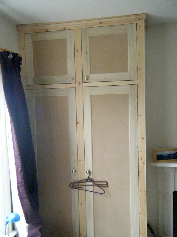 My customer had a workshop but found it very cold in the winter months. I decided to build a stud wall in front of the metal shuttering, I then insulated it with 75mm Kingspan thermal board. On the inside I attached 18mm chipboard sheets to the stud wall. On the outside I faced it with 19mm joinery grade matchboard. A framed, legded and braced door for access was also fitted to the right hand side. Result: a happy warm customer who can tinker on his projects all year.