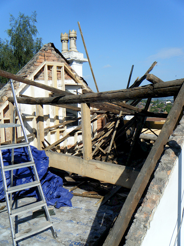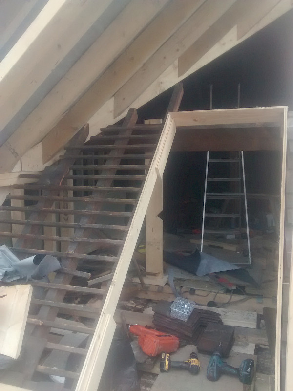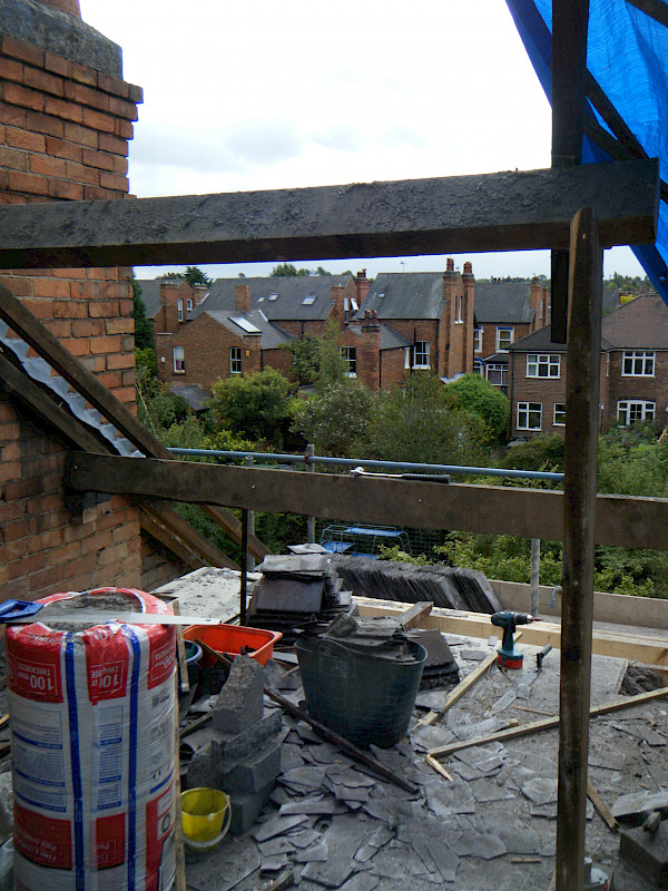 To take off the existing 160 year old roof and construct a new roof with dormer window. To lay a traditional roof covering of slate and associated lead work. To construct a new mezzanine floor and supply and fit a bespoke staircase.